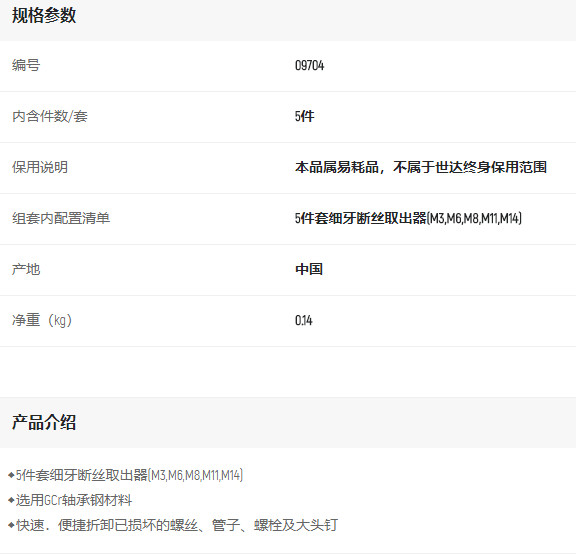 首頁(yè)>產(chǎn)品中心>其他手動(dòng)工具>斷絲取出器>世達(dá)5件套細(xì)牙斷絲取出器